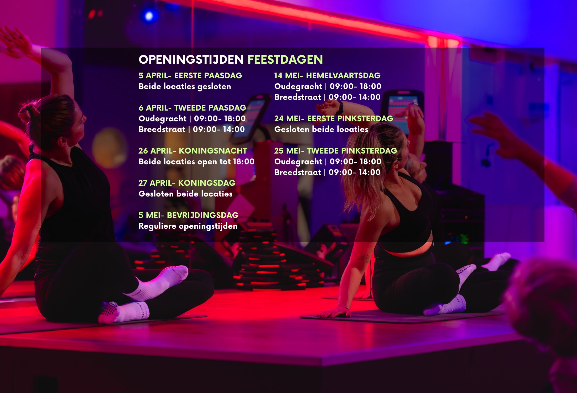 Deze sportschool in Utrecht vind je aan de Breedstraat: een verborgen parel! Op deze locatie staan de groepslessen centraal en zijn 3 prachtige en moderne groepsles zalen te vinden. Ook vind je hier een select aantal fitnessapparaten.